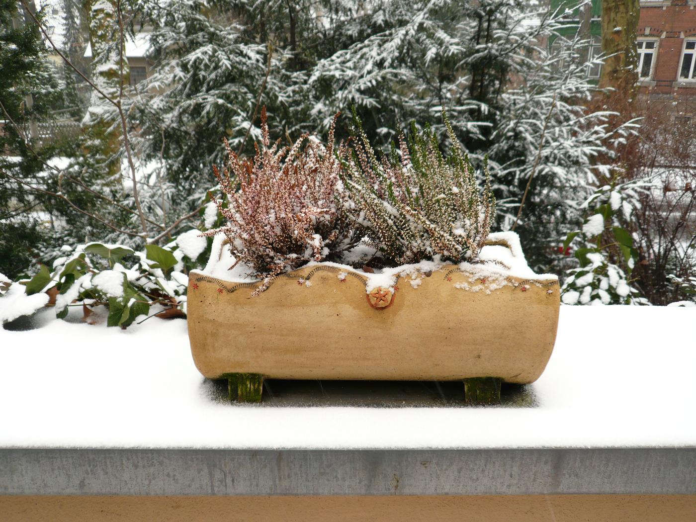 Meine Gartenkeramik ist frost- und witterungsbeständig. Das heißt der Scherben nimmt weniger als 5 % Wasser auf. Ich nutze ausgewählten Ton aus der Industrie. Die Pflanzgefäße sind zudem schwer und stehen somit stabil auch auf windigen Terrassen oder Balkonen.
