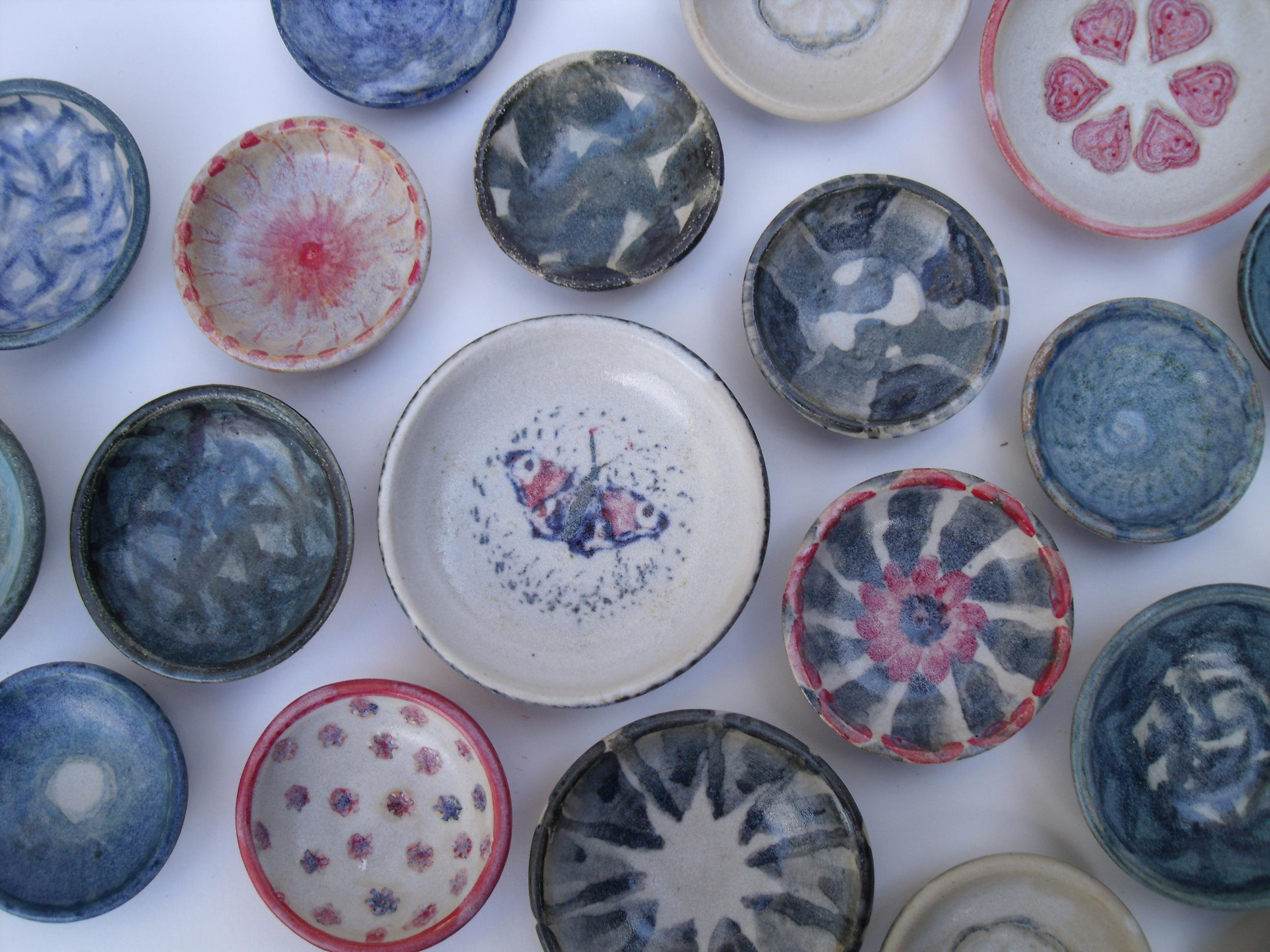 Im Freien führen wir Rakubrände durch. Dafür können Sie vorgefertigte Keramikbecher bemalen und anschließend gleich im Ofen fertig brennen.